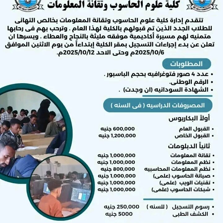 تمت، بحمد الله، معاينات أعضاء هيئة التدريس ومساعدي التدريس بكلية علوم الحاسوب وتقانة المعلومات – جامعة وادي النيل، وذلك في أجواء اتسمت بالشفافية والتنظيم الجيد، بحضور لجنة المعاينات المختصة وممثلي الكلية. شملت المعاينات عدداً من المتقدمين في مختلف التخصصات المُعلنة، حيث تم تقييم المرشحين وفقاً للمعايير الأكاديمية واللوائح…