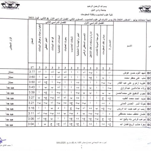 Categories اخر الاخبار نتيجة تقانة المعلومات_ المستوى الاول_ الفصل الدراسي الاول والثاني قبول 2022 شواغر By admin itc Estimated read time 0 min read سبتمبر 8, 2025