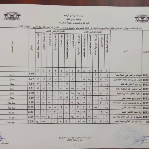 Categories اخر الاخبار نتيجة امتحانات يوليو -اغسطس 2025 بكالريوس الشرف في علوم الحاسوب _ المستوى الثاني الفصل الدراسي (الاول_الثاني) قبول 2022 By admin itc Estimated read time 0 min read سبتمبر 9, 2025