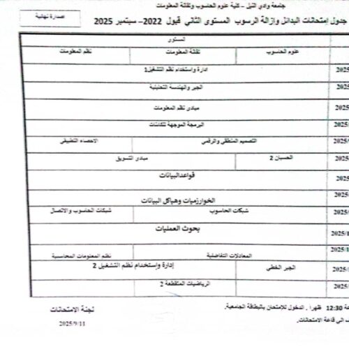 Categories اخر الاخبار نتيجة امتحانات يوليو_ اغسطس بكالريوس الشرف في نظم المعلومات المستوى الثاني الفصل الدراسي (الاول _الثاني)قبول 2022 By admin itc Estimated read time 0 min read سبتمبر 9, 2025