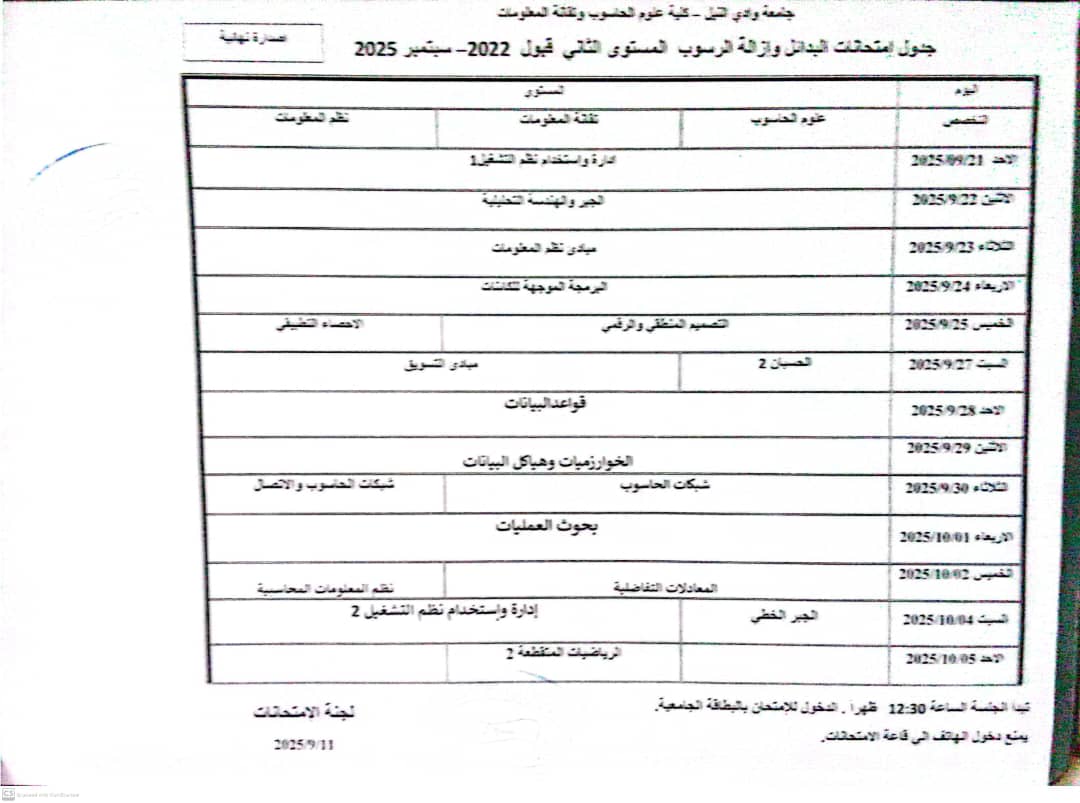 Categories اخر الاخبار جدول امتحانات البدائل وازلة الرسوب المستوى الثاني قبول 2022_ سبتمبر 2025 By admin itc Estimated read time 0 min read سبتمبر 13, 2025