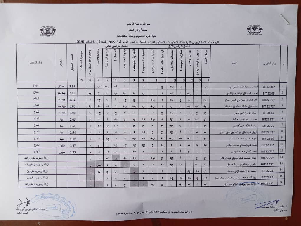 Categories اخر الاخبار نتيجة امتحانات بكالريوس الشرف في تقانة المعلومات_ المستوى الاول _ الفصل الدراسي (الاول الثاني ) قبول 2022م الشواغر اغسطس 2025 By admin itc Estimated read time 0 min read سبتمبر 14, 2025