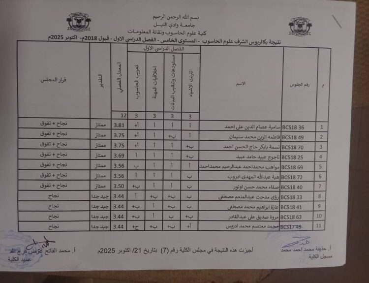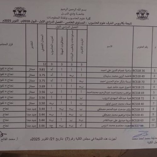 Categories اخر الاخبار نتيجة المستوى الخامس_ الفصل الدراسي ( الاول_ الثاني)علوم حاسوب وتقانة المعلومات ونظم المعلومات _قبول 2018 م By admin itc Estimated read time 0 min read أكتوبر 23, 2025