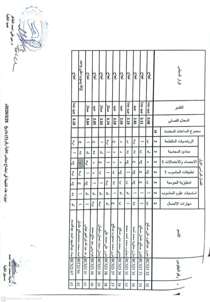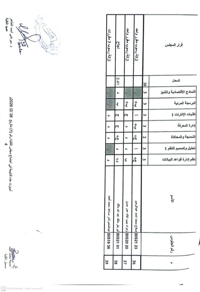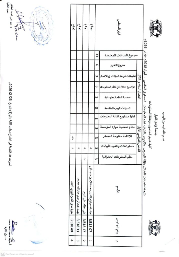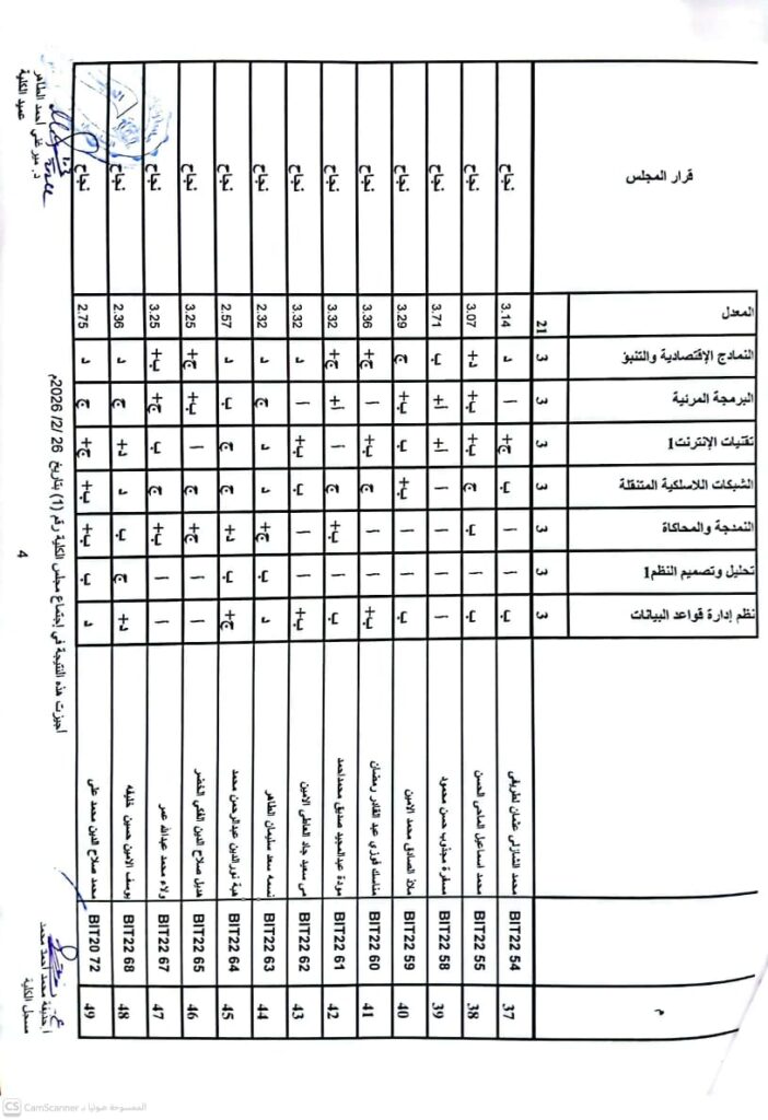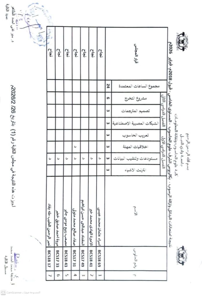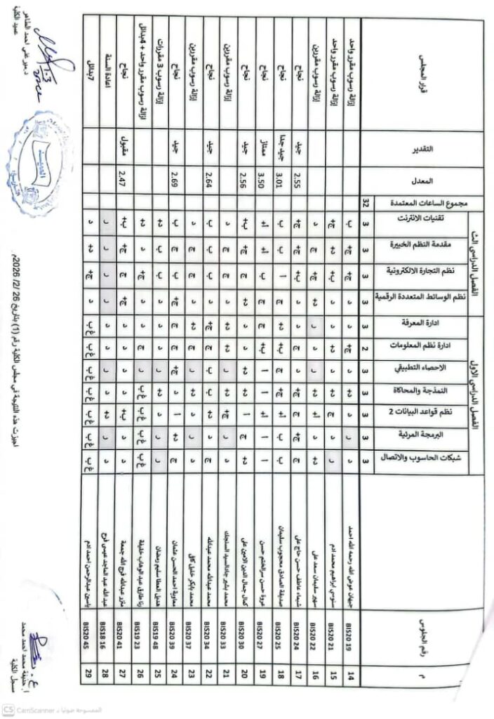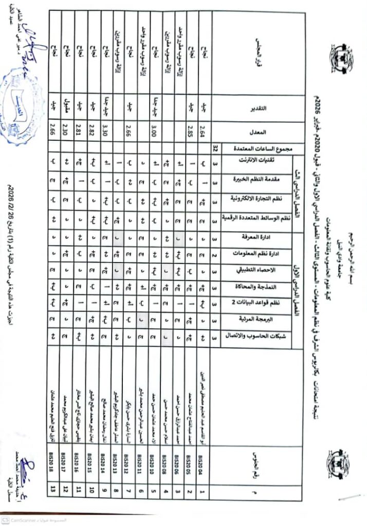 نتيجة بكالريوس الشرف في علوم الحاسوب 2020 وتقانة المعلومات قبول 2020ونظم المعلومات المستوى الرابع قبول 2020