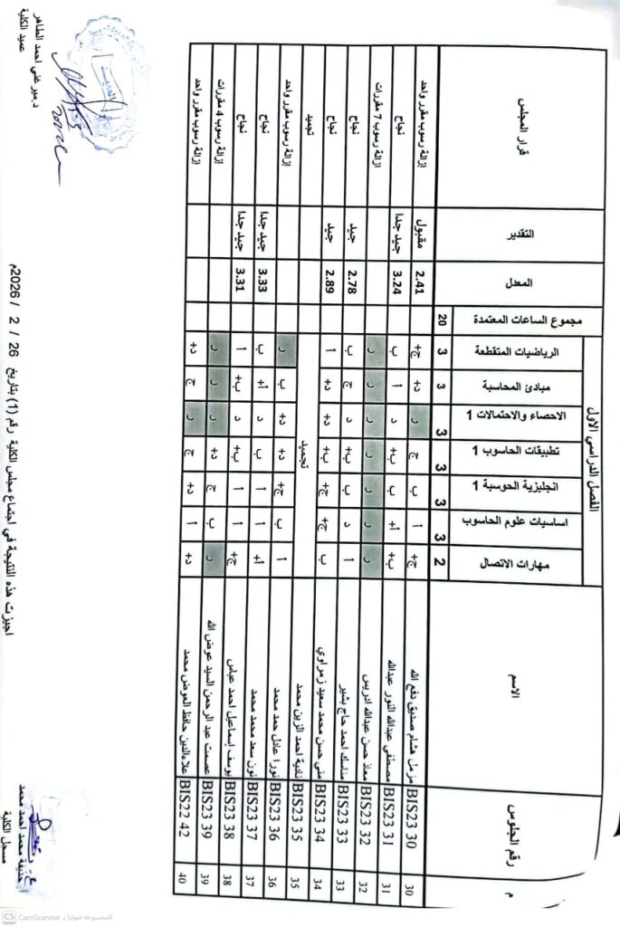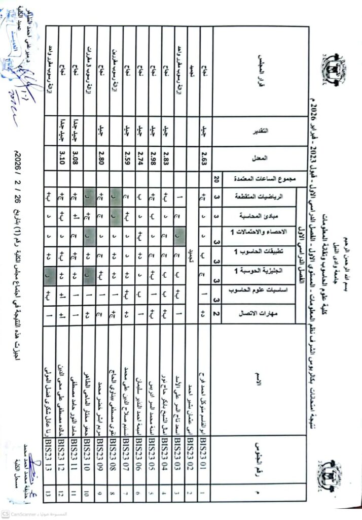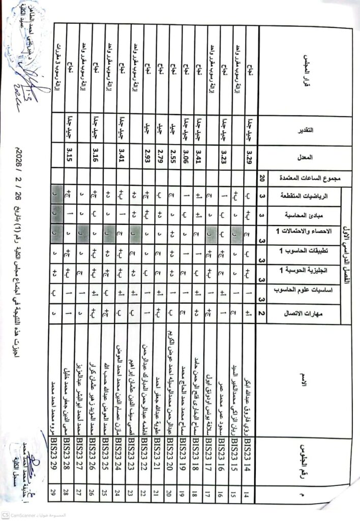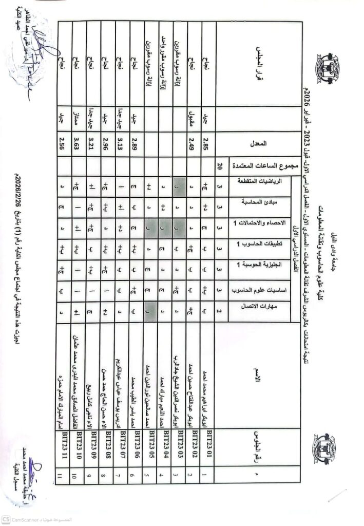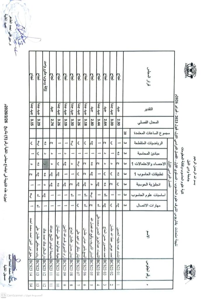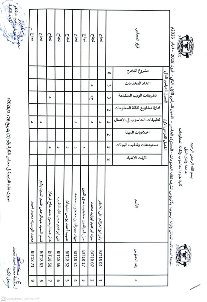 نتيجة بكالريوس الشرف في علوم الحاسوب 2023 وتقانة المعلومات قبول 2023 ونظم المعلومات المستوى الرابع قبول 2023