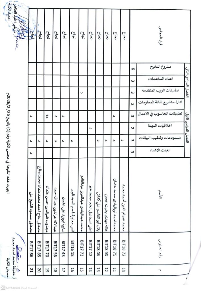 نتيجة بكالريوس الشرف في علوم الحاسوب 2021 وتقانة المعلومات قبول 2021ونظم المعلومات المستوى الرابع قبول 2021