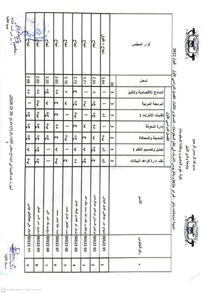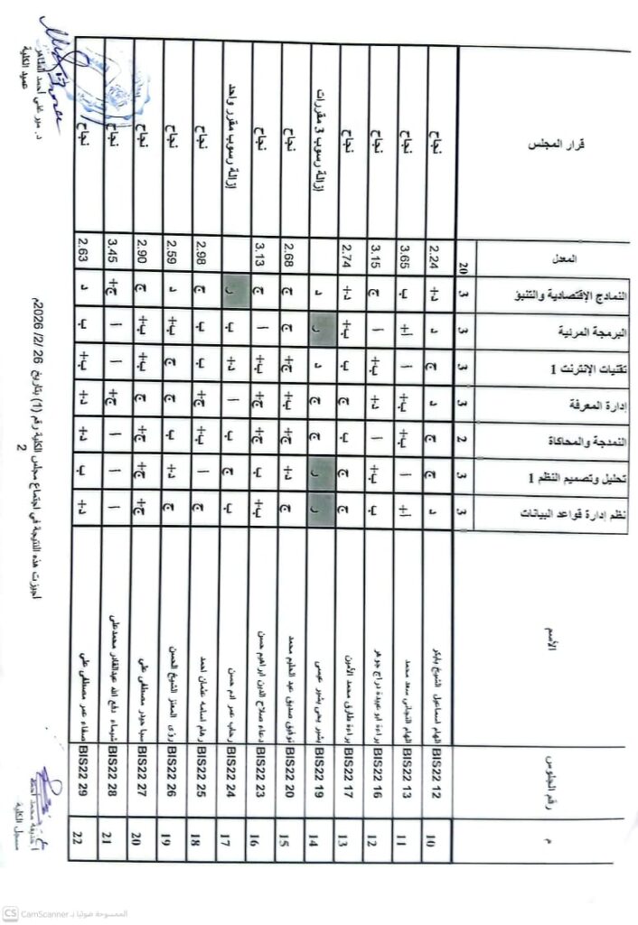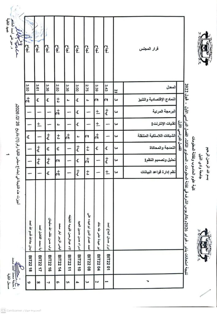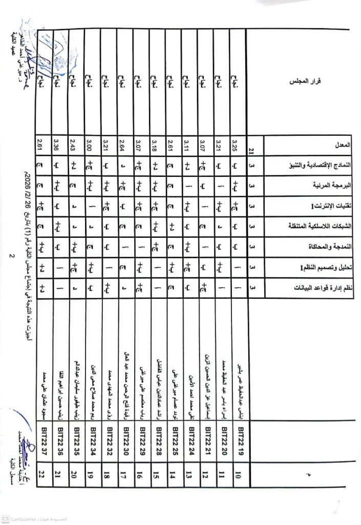 نتيجة بكالريوس الشرف في علوم الحاسوب 2022 وتقانة المعلومات قبول 2022ونظم المعلومات المستوى الرابع قبول 2022